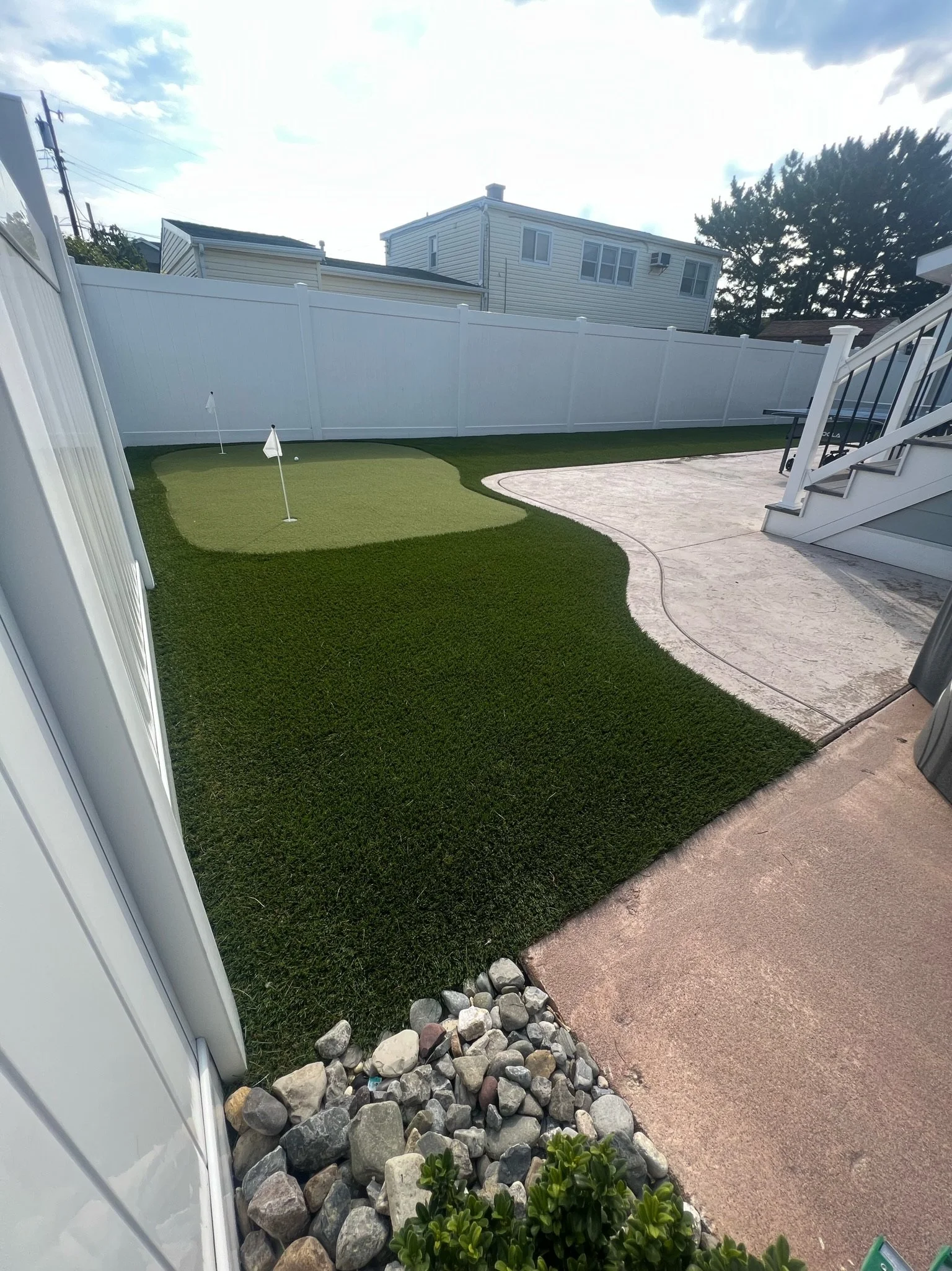 Looking to sharpen your short game without leaving the comfort of your home? We design and install custom artificial putting greens for golf enthusiasts in Stone Harbor. Our putting greens replicate the look and feel of a professional course, offering a realistic play experience that you can enjoy year-round. Whether it's for personal practice or a fun backyard feature, our putting greens are tailored to your needs and fit seamlessly into your outdoor space.